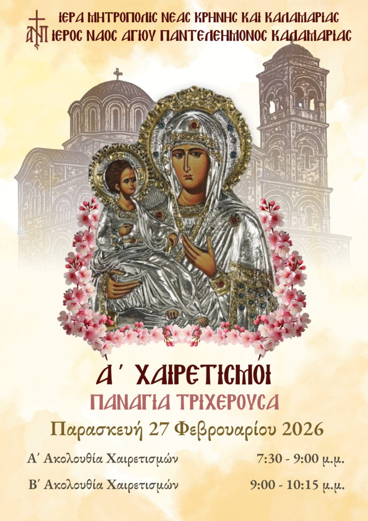 Α’ Χαιρετισμοί στον Ιερό μας Ναό με την Παναγία την Τριχερούσα.